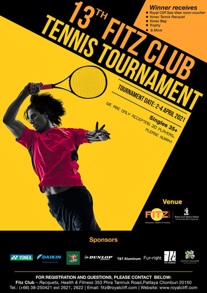 Mark your calendars! The highly anticipated annual Fitz Club Tennis Tournament will return from 2 – 4 April 2021. We invite all Tennis fans to come and watch! There will be lots of food, drinks and exciting matches to keep you entertained throughout the weekend. This year’s category is 35+ Men Singles for tennis players of all skill levels. 20 players will fight it out to get their name on the Fitz Club Champions board and win lots of prizes. What makes this event so popular is the round-robin format in which all competitors are guaranteed to play several matches in one of the best Tennis clubs in Thailand. Sponsored by Siam Daikin Sales Co., Ltd, Carabao Group, Yonex Thailand, Dunlop Thailand, T&T Aluminum, Fur-right, VC Fabric, Meiji and Supply Gallery, this tournament could not have happened without the support from these lovely sponsors who are supporting Pattaya with its grand vision of being a top sports destination. Approaching its 13th year, the Fitz Club Tennis Tournament continues to promote fitness, sports, and recreation, especially to more senior players. The newly resurfaced courts have been installed with new LED lights so they will be as bright as the daylight during nighttime enabling players to experience a Grand Slam tournament vibe.