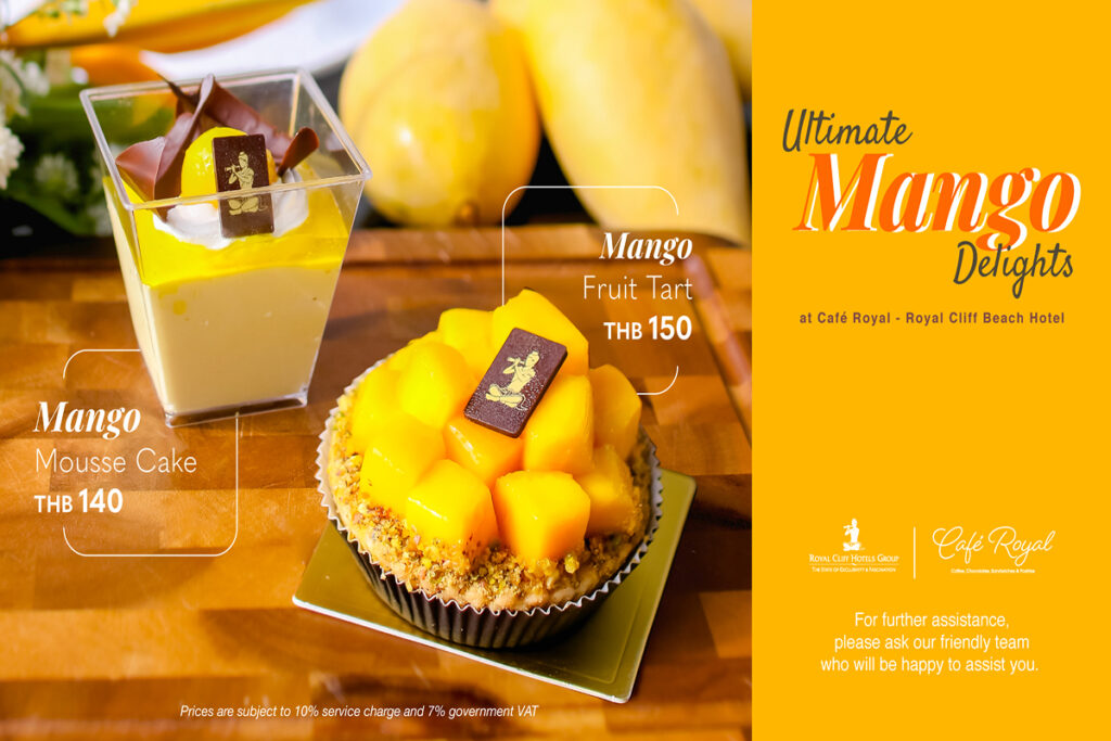 Ceaselessly popular in Thailand, take pleasure in mango-centric desserts at Café Royal this April. We feature a delectable Mango Mousse Cake and Mango Fruit Tart that will charm your tastebuds and bring you joy. Open daily from 9 AM to 9 PM, be sure to experience these special summer sweets at our pâtisserie situated in front of the Panorama restaurant at the Royal Cliff Beach Hotel. All of our sandwiches, cakes, pastries and chocolates are made fresh every day.