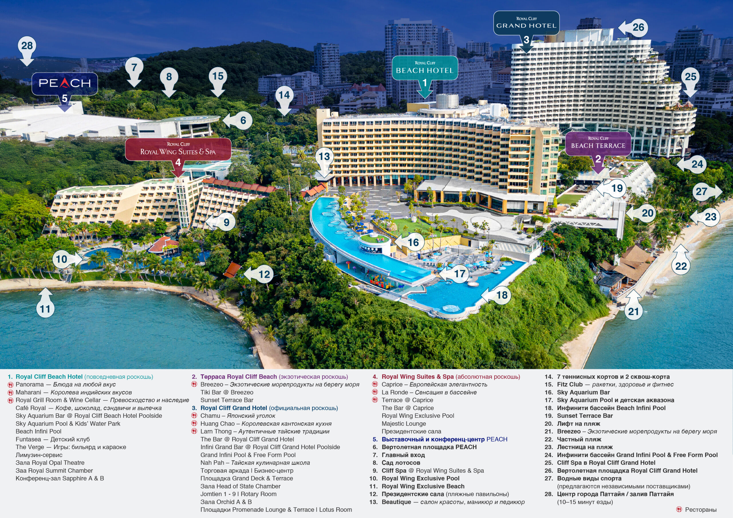 Паттайя находится в 90 минутах приятной езды от Бангкока по шоссе Бангна-Трат или шоссе Бангкок-Чонбури. Royal Cliff Hotels Group расположена на мысе в южной части залива Паттайя.