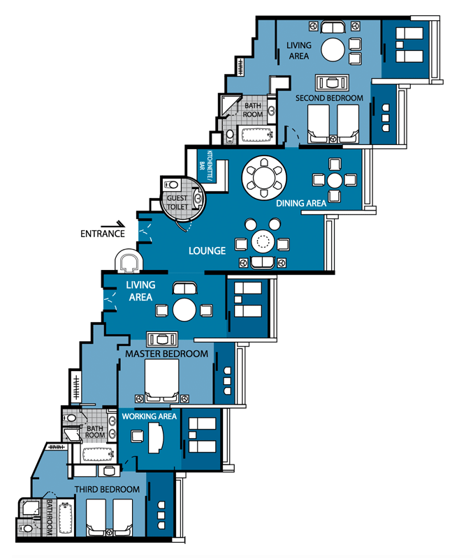 The three-bedroom Presidential Heritage Suite is a favourite of Royalties, Heads of States and international celebrities. Your 24-hour personal butler is ready to assist with anything you need — no request is too small. Warm and welcoming, you’ll find rich details inspired by traditional Thai design throughout including priceless teakwood fittings. Private balconies capture panoramic sea views, perfect for soaking up the sunshine or admiring a spectacular sunset. Gather for cocktails and conversation in the elegant lounge and dining spaces. Or if you prefer to entertain outdoors, host friends and family at a beautiful beachside pavilion that you have free access to and experience an outdoor Jacuzzi, feast on delectable BBQ or enjoy a relaxing massage. There is a reason why this suite is frequented by the Top Feng Shui Master.