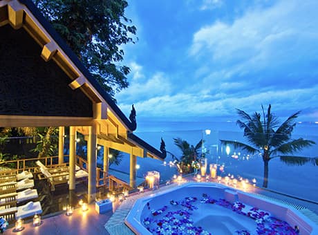 Spend an enjoyable day in one of our Presidential Beach Salas, a gorgeous open-air oriental-inspired pavilion situated right in front of the beach. Perfect for small groups that are looking for a casual beachside atmosphere, celebrate special occasions in style, or simply kick back and unwind with friends over delicious seafood barbecue. Guest can relish an indulgent dip in the Jacuzzi, get pampered with relaxing massages, or revel in an intimate dining experience under the stars.